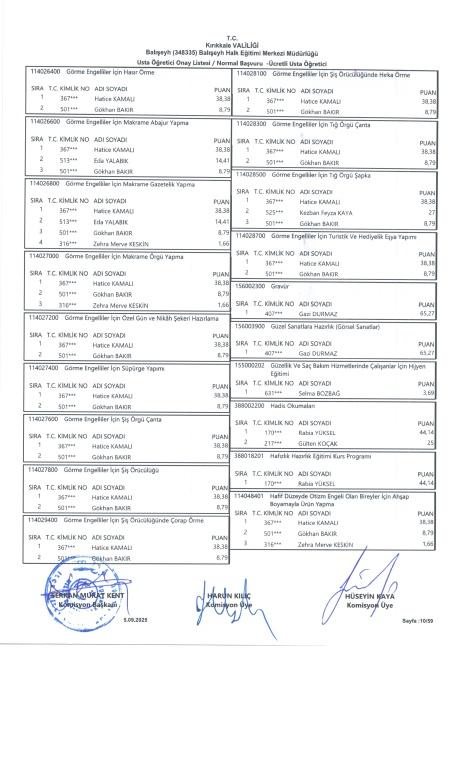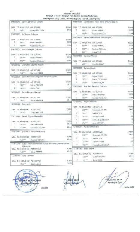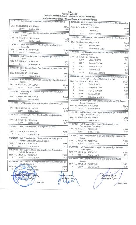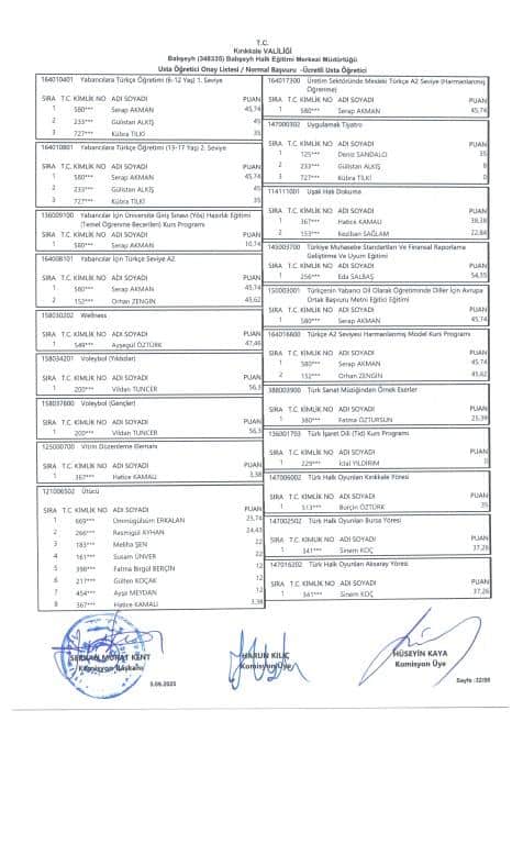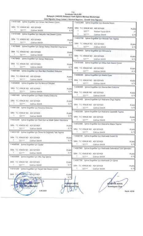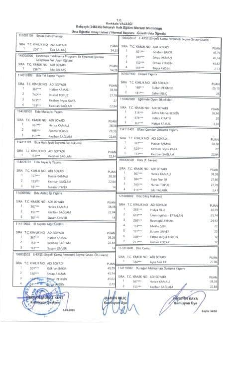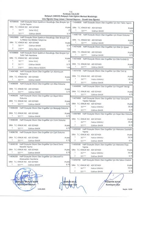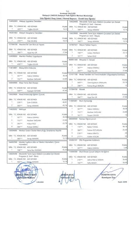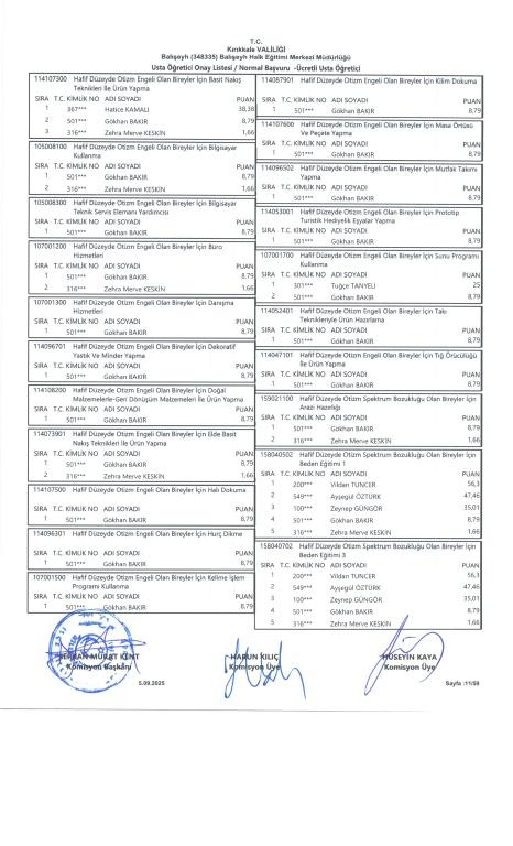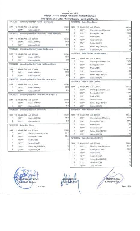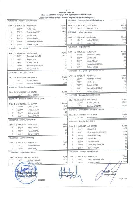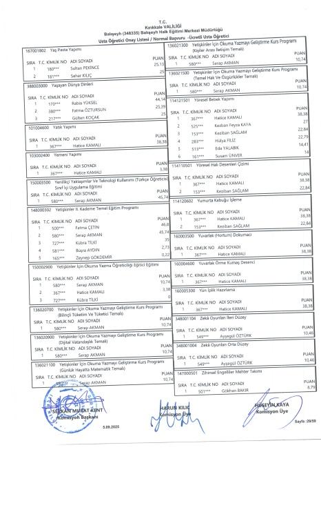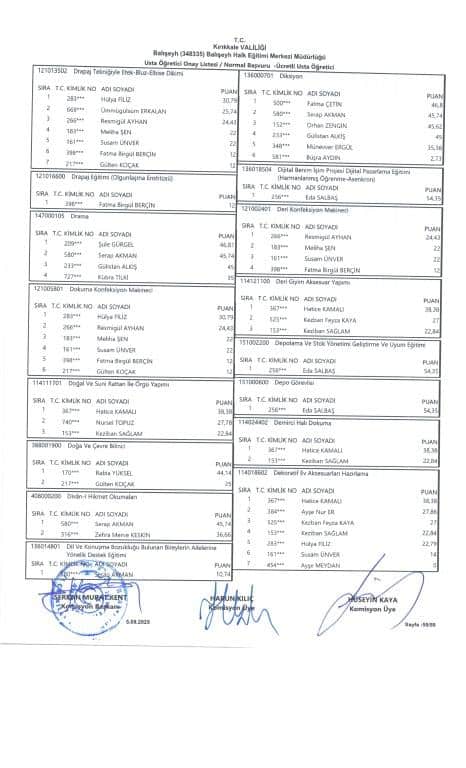 2025/2026 Eğitim Öğretim Yılı Usta Öğretici Onay Listesine aşağıda listelenmiştir . Ders Saati kotası ve fiziki ortam yetersiszliği nedeniyle açılabilecek kurslara başvuran usta öğreticilerimiz ile yayınlamış olduğumuz takvim doğrultusunda iletişime geçilecektir.