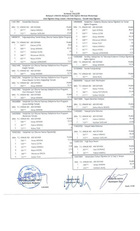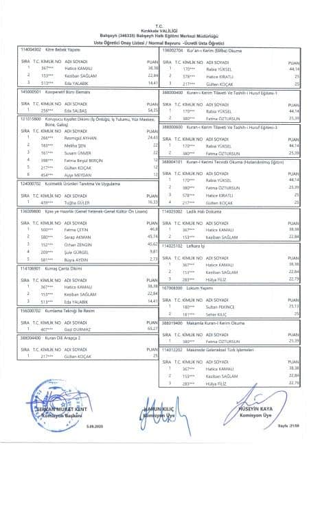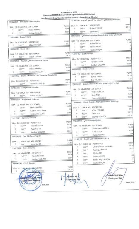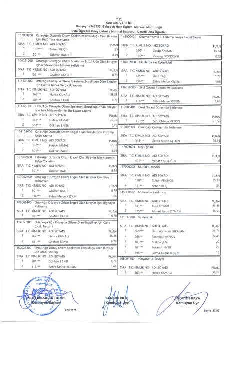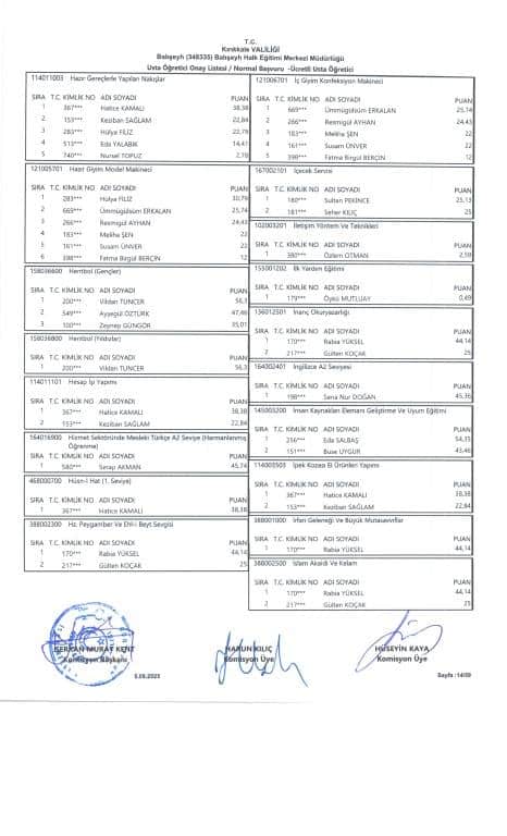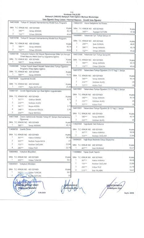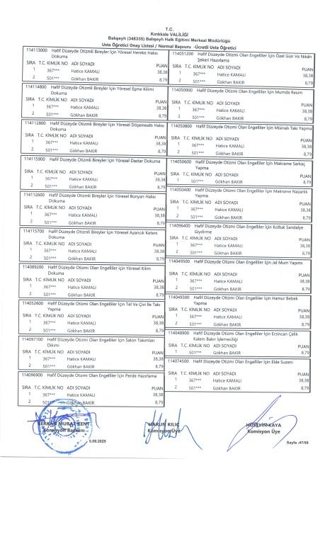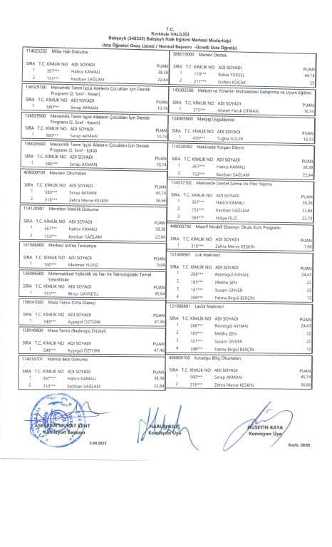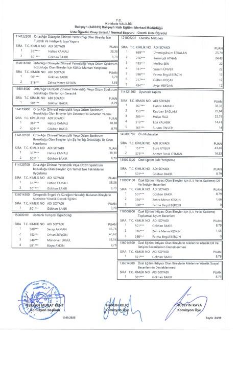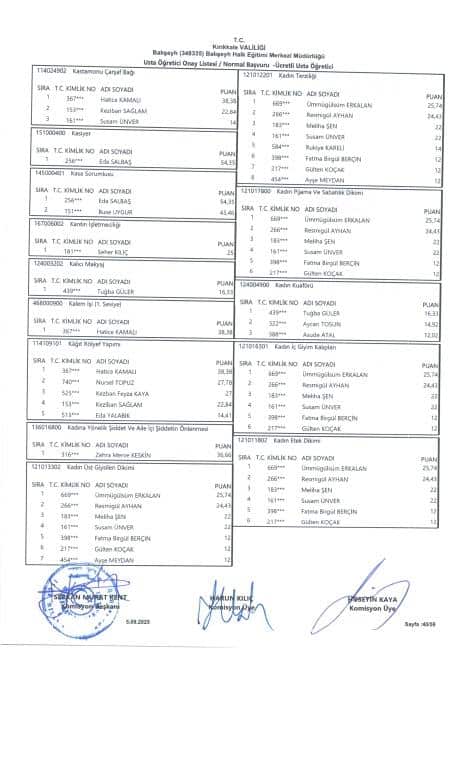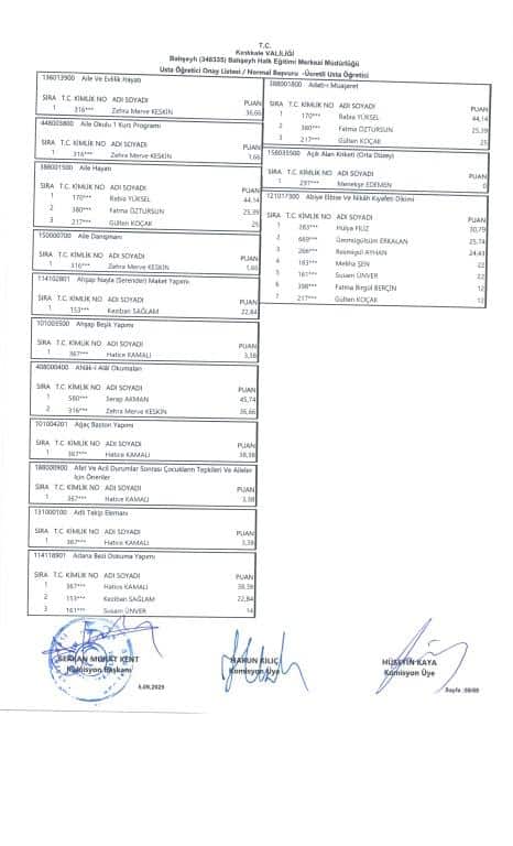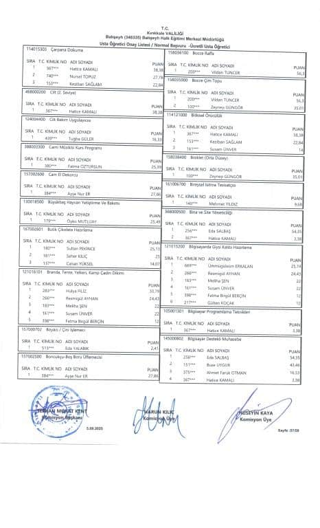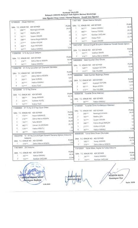 2025/2026 Eğitim Öğretim Yılı Usta Öğretici Onay Listesine aşağıda listelenmiştir . Ders Saati kotası ve fiziki ortam yetersiszliği nedeniyle açılabilecek kurslara başvuran usta öğreticilerimiz ile yayınlamış olduğumuz takvim doğrultusunda iletişime geçilecektir.